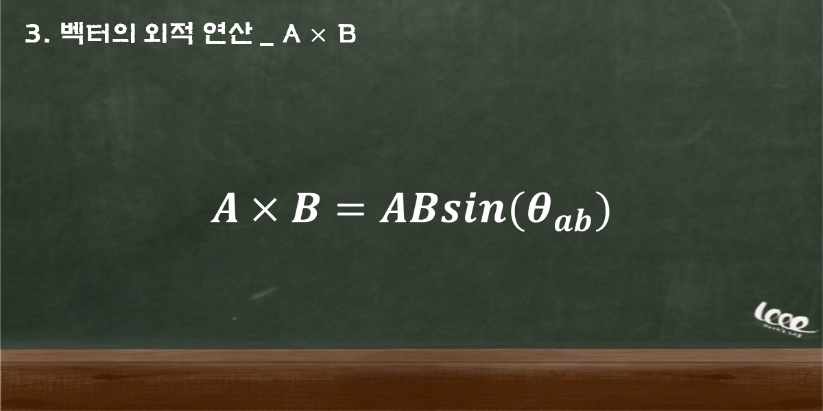 벡터 곱이라고도 불리는 이유는 계산 결과가 벡터가 되기 때문인데, 두 벡터의 외적은 벡터 형태이다.