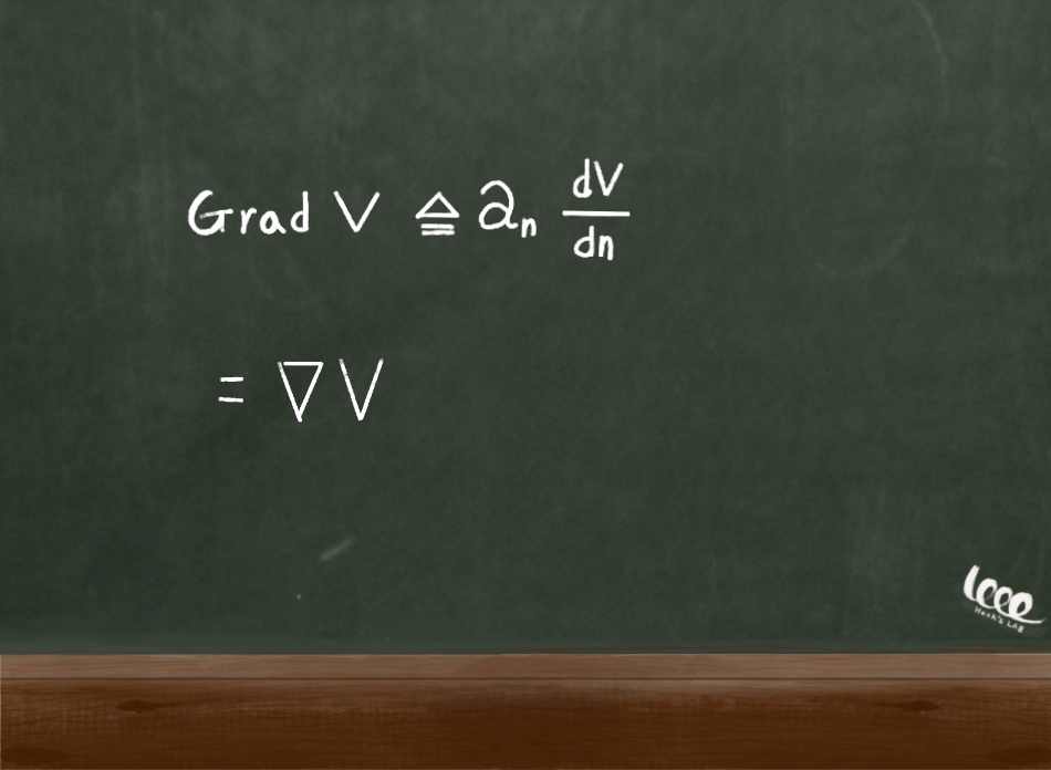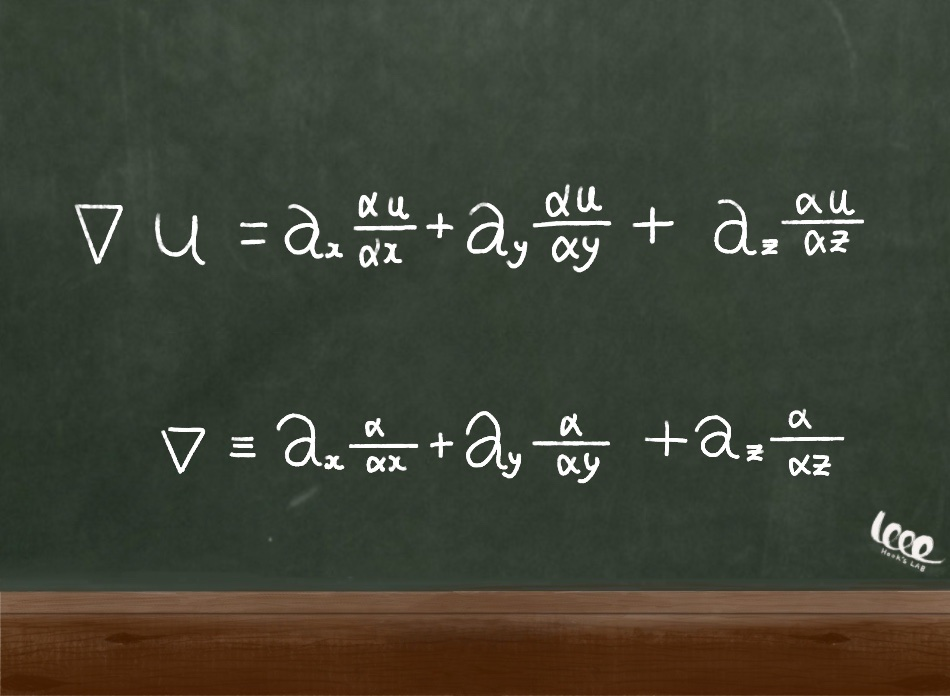 직교 좌표계에서 그레디언트의 기호를 다음과 같이 편미분으로 정의할 수 있다.