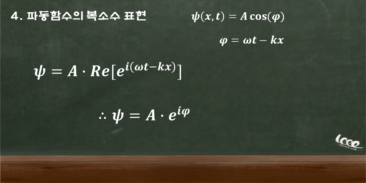 파동을 복소수 형태로 표현하기 위해서는 복소수의 실제 영역만을 취급해야 한다. 그리고 실제 영역을 취급하는 Re 기호는 광학에서 종종 생략하여 나타낸다. 따라서 다음과 같은 수식 표현이 가능해진다.