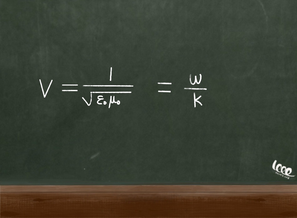 * 전도체가 아닌 균질한 물질이라고 가정할 때, 이 물질을 지나는 전자기파의 파가 진행하는 속도는 V로 정의되었었다.