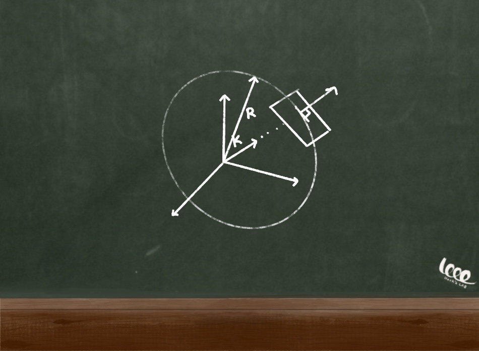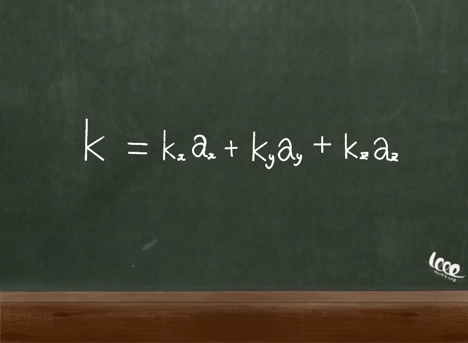 R벡터와 k벡터의 정의에 따라서 둘의 내적값은 항상 평면파와 수직 한 방향이며, 임의의 원점에서 평면파까지의 거리가 된다.