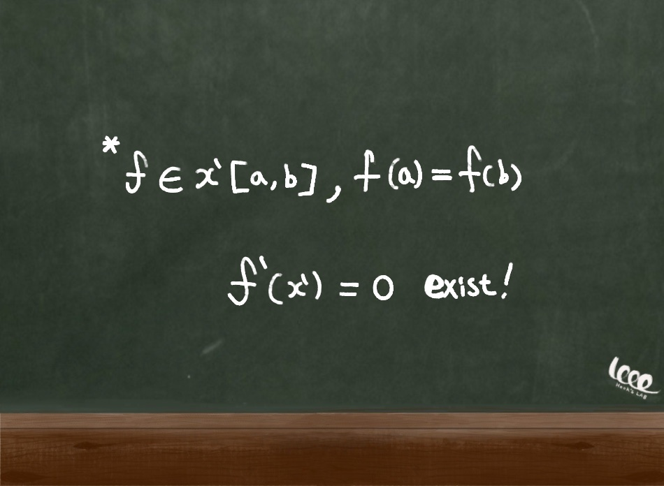 정리 내용 : f(a)와 f(b)가 같다면, f'(x)가 0이 되는 수가 반드시 하나 이상 존재한다.