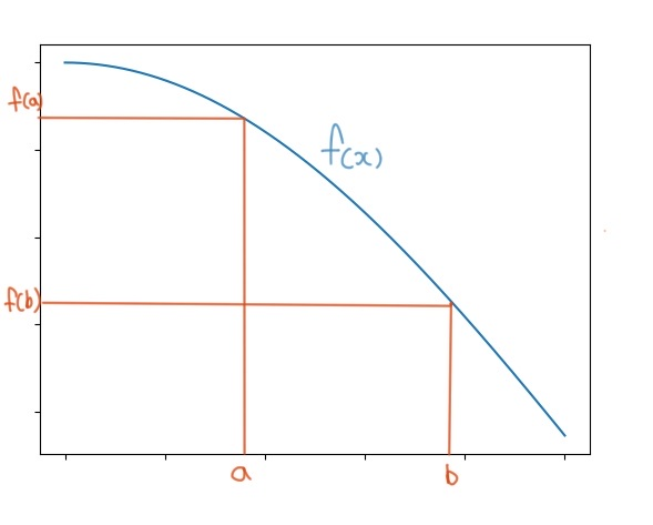 가정 조건 : 함수 f(x)가 폐구간 [a, b]에 포함된 임의의 변수 x'를 갖는다고 가정하자.