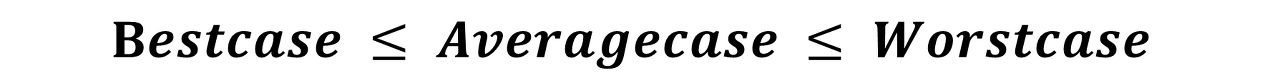 최고의 상태는 알고리즘을 빠르게 동작하게 하는 입력값 n개 일 때의 함수를 의미한다. 마지막으로 최고, 최악의 상태의 사이에 해당하는 n개의 데이터를 입력하는 경우를 평균 상태(Average Case)라 칭한다. 결과적으로 알고리즘의 분석은 데이터 개수에 의존하는 것이다. 다음의 수식을 참고하자.