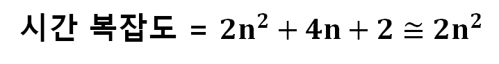 | n2 | 2차 | 시간복잡도가 2차 함수 꼴이다. |