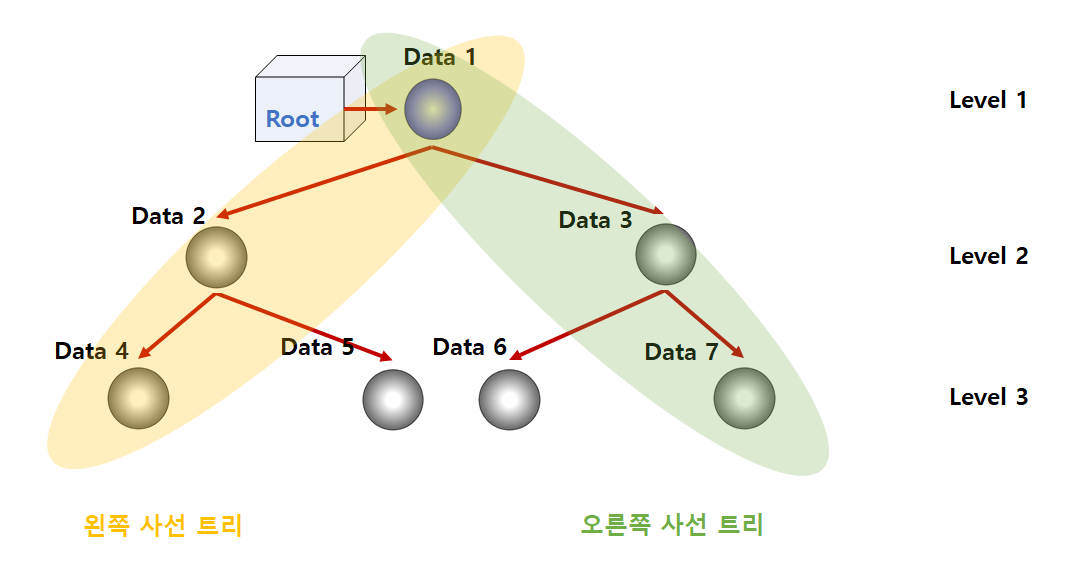 - 자손(siblings) 데이터는 같은 계층(level)에서 같은 부모를 가지고 있는 데이터 집단을 의미한다.