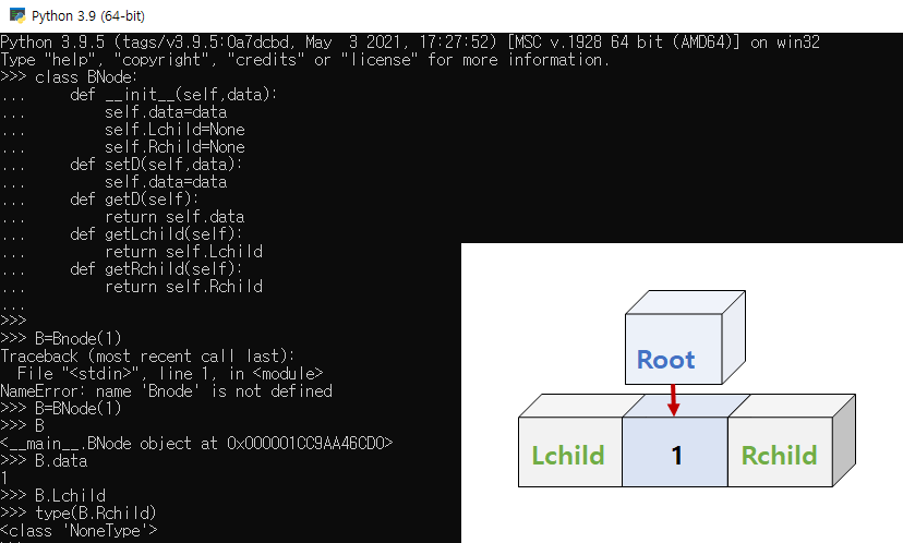 순회 기능에도 여러 가지 종류가 존재하므로 이곳에서는 기본 알고리즘을 구현함으로써 이진트리를 구성하고자 한다. 가장 먼저 이진 노드 트리 구성을 위한 노드 알고리즘을 알아보자.