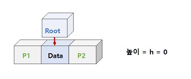 위 구성을 보면, 이진트리의 특성을 알 수 있다. 바로 높이가 0이라는 것인데, 재미있는 것은 높이를 통해서 가득 찬 이진트리 유형일 때 이진트리의 노드 개수는 2h라는 것을 유추 할 수 있다.