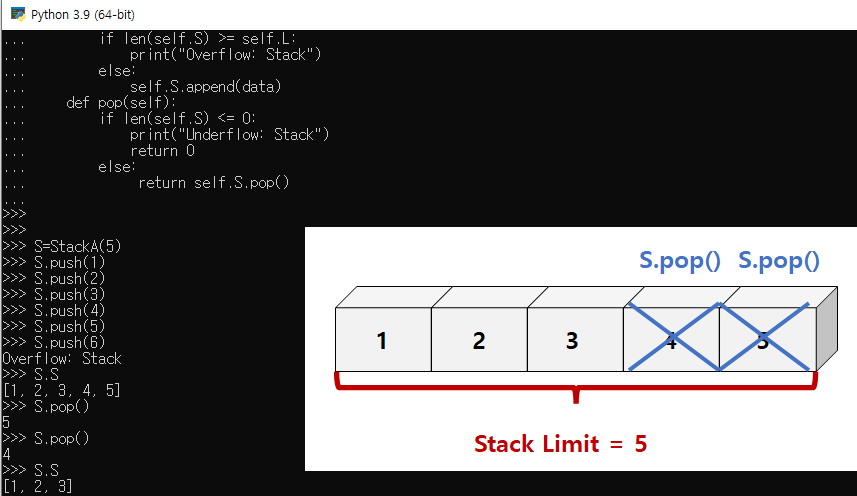 print("Underflow: Stack")