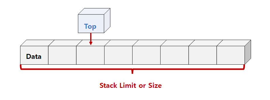 여기에서는 가장 단순한 배열을 기본으로 스택을 구현하고자 한다. 스택의 구현을 하기 전에 가장 먼저 스택의 기본 배열 구조를 알고 넘어가자. 배열 스택은 다음과 같은 리스트 구조로 구현된다.