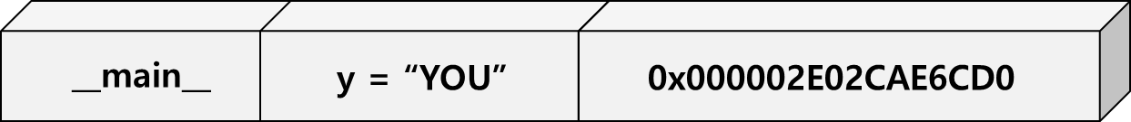 가장 먼저 눈에 띄는 코드가 바로 '___main__' 코드이다. 그리고 y 변수와 데이터값, 그리고 주소이다. 어디서 많이 본 구조이지 않은가? 바로 데이터의 구조와 동일한 형태를 가지고 있다. 즉, 클래스는 함수를 잘게 쪼개어 하나의 덩어리 형태로 동일한 주소의 메모리에 할당하는 것이라고 볼 수 있겠다. 따라서 포인터의 역할을 '.'으로 할 수 있는 것이다.