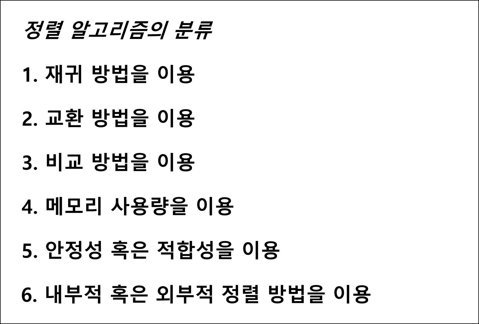 1. 정렬 알고리즘의 분류 _ 어떤 수단을 이용하는가?