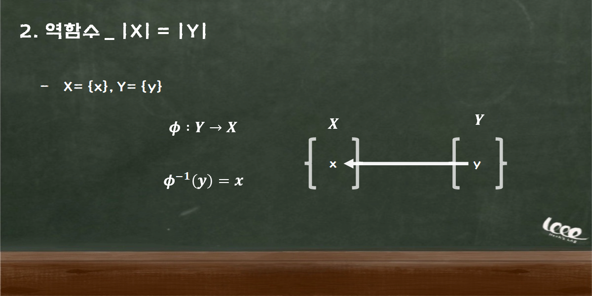 위에서 정의한 X와 Y집합의 역함수는 다음과 같이 나타 낼 수 있다.