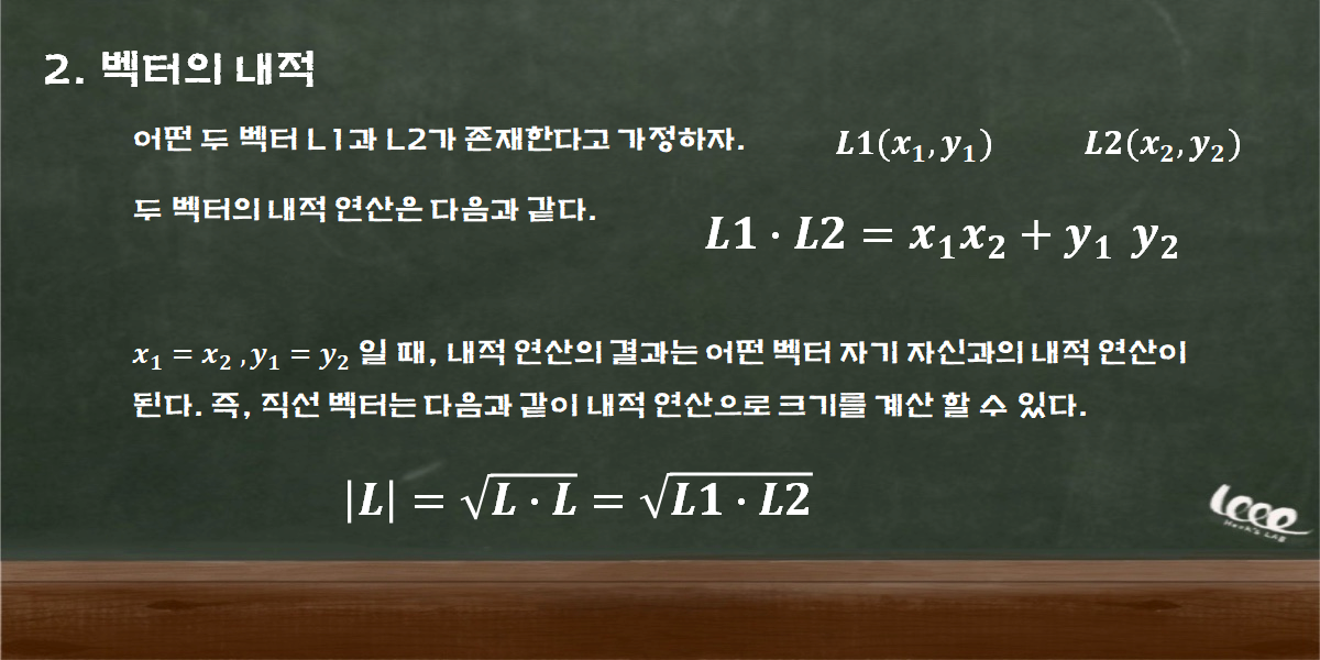 직선 벡터의 크기와 내적 연산