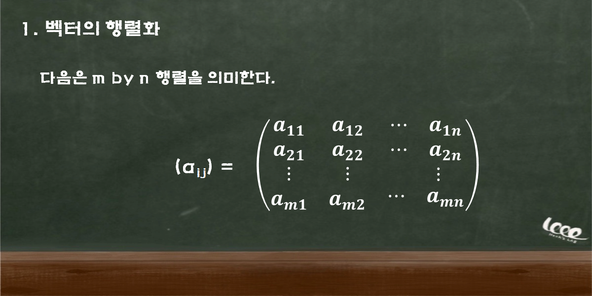 어떤 n차원 벡터를 가정하고, 다음의 벡터 행렬 개념을 알아보자.