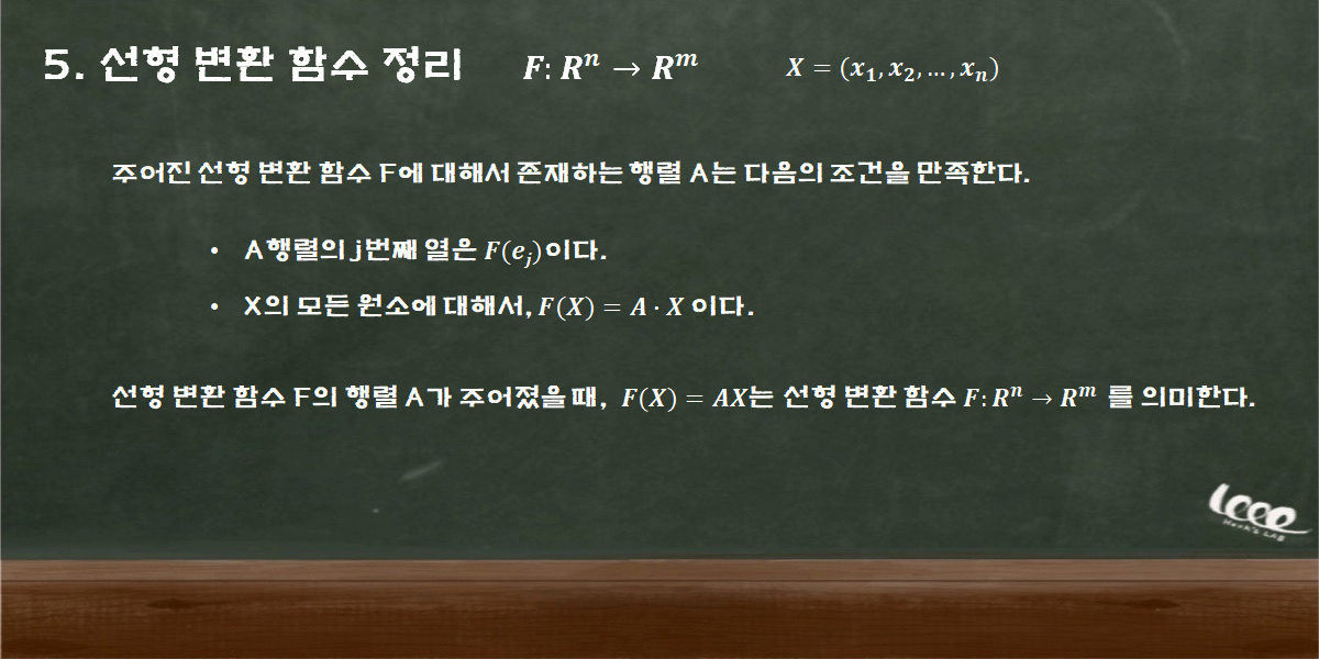 선형 변환 함수는 벡터의 변환을 해주는 함수이기 때문에 벡터를 변수로 갖는다. 벡터 함수의 매핑을 위해서 간단한 내적 연산으로 그 작용을 구현할 수 있다.