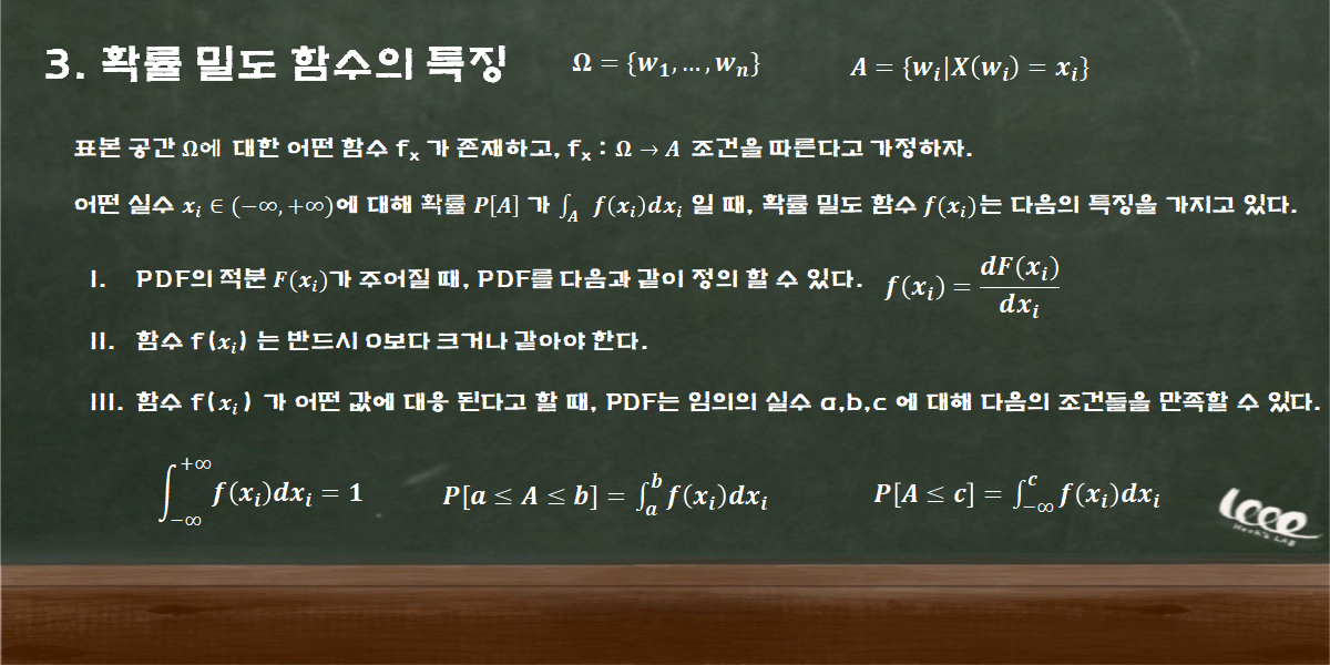 확률 밀도 함수의 특징은 다음과 같다.