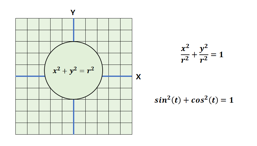 곡선의 대표적인 예시인 원의 방정식을 통해 경로가 어떻게 벡터를 매개변수로 갖는지 이해해보자. 2차원 평면에서 원의 방정식과 그 상(image)은 다음과 같다.