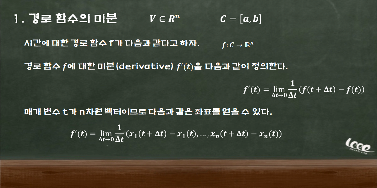 주어진 경로 함수의 미분 정의는 다음과 같다.