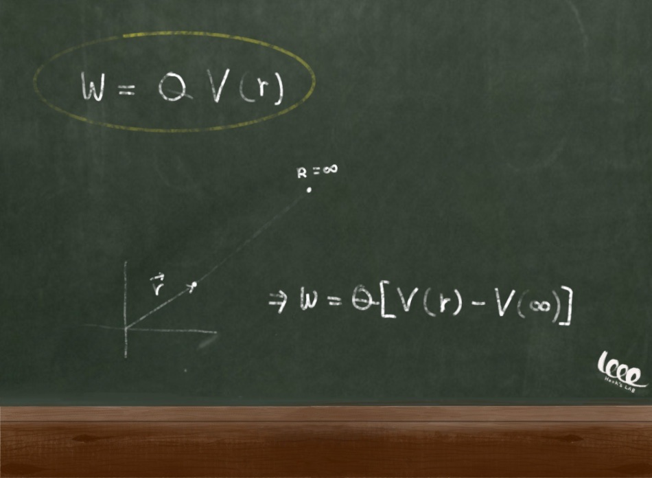 하지만, 앞서 배운바와 같이 우리는 전기적인 위치에너지를 일반적으로 떨어진 거리 r과 무한히 떨어진 거리에서의 전압 차이로 나타내었다.