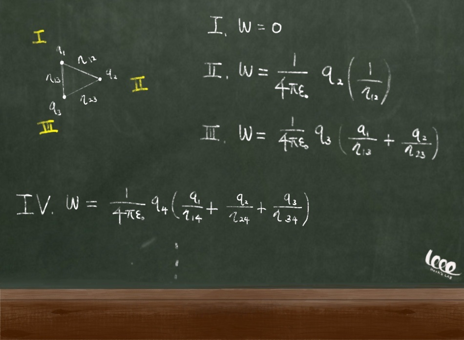 D. 계속해서 n개의 전하까지 늘어나는 경우, 필요한 전체 일은 다음과 같은 합으로 표시할 수 있다.