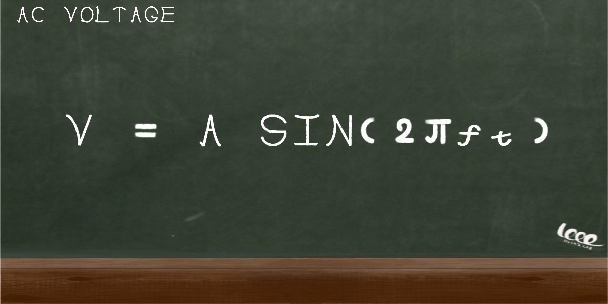 직류를 형성하기위한 전압은 항상 일정한 전압을 걸어주면 되므로 상수로 표기할 수 있다. 하지만 교류는 시간에 따라 그 값이 달라지므로 다음과 같이 삼각함수로 표기한다.
