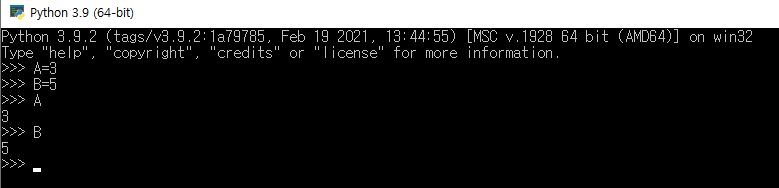 특정 변수에 데이터를 'A=3', 'B=5'와 같은 명령어를 통해서 integer의 데이터를 저장하는 것이 가능하다.