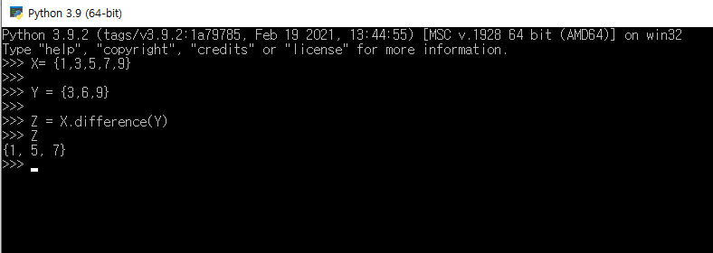 차집합을 파이썬에서 구현하기 위해서, 차집합 원소를 저장할 이름을 사용자의 마음대로 정한다.