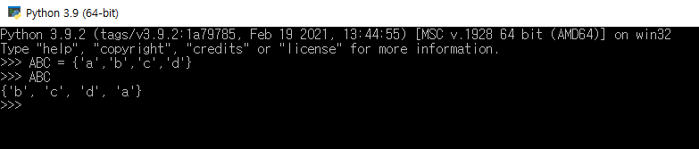 * 집합은 순서대로 정의하지는 않기 때문에 코드 결과가 살짝 다를 수 있다. 하지만 집합은 순서에 상관없이 같은 데이터이다.