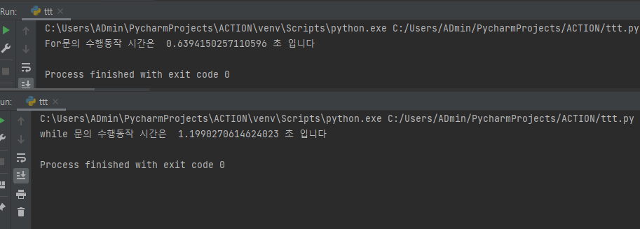 파이썬에는 while 문과 for문이라는 반복문 코드가 존재한다. 두 반복문은 얼핏 보면, 반복해서 정해준 코드를 수행한다는 점에서 매우 비슷한 것 같지만, 개념과 수행 시간에 차이가 존재한다. 예를 들어, 총 10,000,000번 1+1을 연산 결과를 리스트에 저장하는 프로그램을 만들어 수행 시간을 체크해보도록 하면 다음과 같은 결과를 얻는다.
