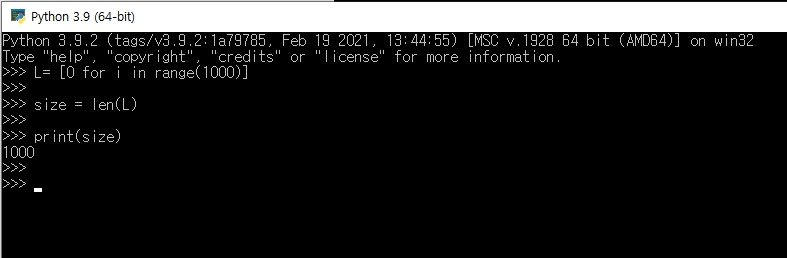 A. 0 값을 가지는 리스트 만들고 사이즈 출력하기