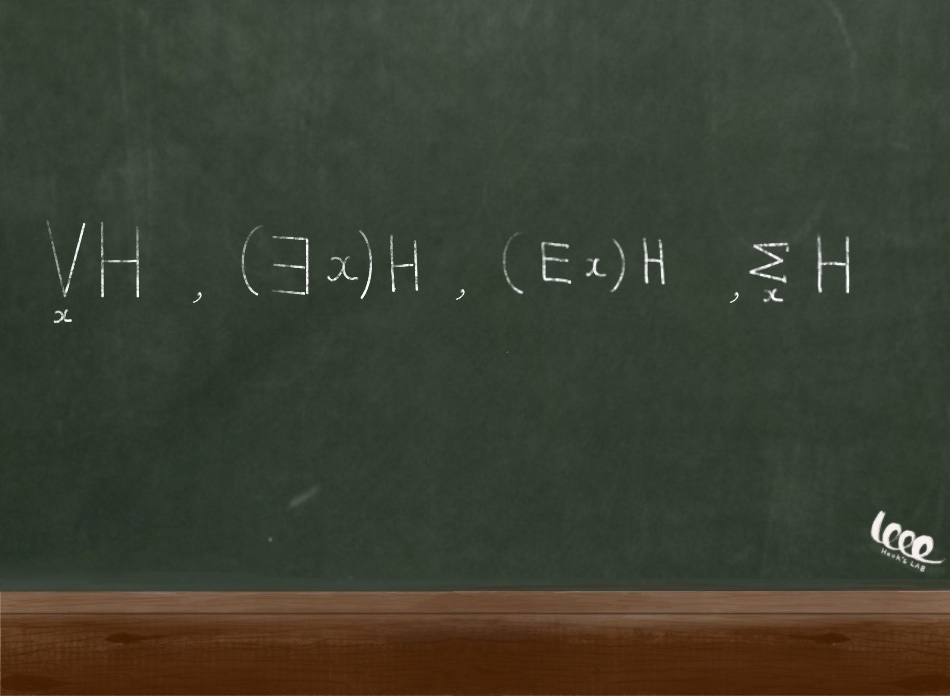 마찬가지로 존재 양화사의 수학적 기호는 다음과 같다.