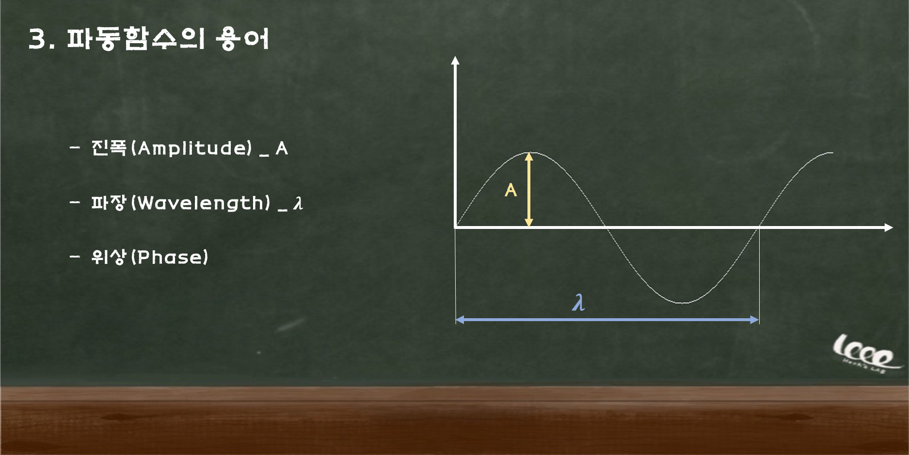 - 이때, A는 파동의 진폭(Amplitude), k는 파동의 를 나타낸다.