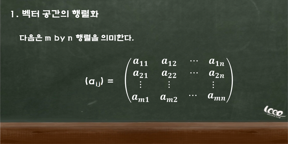 벡터 공간의 행렬화로 인해서 n개의 연립 일차 방정식을 한 줄로 나타내는 것이 가능하다. 벡터 공간을 행렬로 표기하는 것은 우리가 벡터 공간을 더 잘 이해하는 데에 있어 필요한 수학적 기법이다.