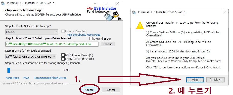 USB installer는 리눅스 팬 드라이브를 생성해주는 프로그램이다.